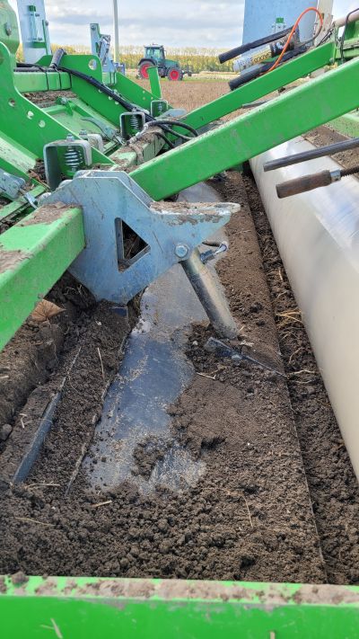 Een gladde rol kan je goed afschrapen met een hoeklijn of staalkabels. Als je een kooirol zou nemen zou die vollopen. En de plantmachine heeft sensoren voor de diepteregeling en vlakstelling. Dat werkt beter als het grotendeels hetzelfde vlak is. Een packerrol zou eventueel ook kunnen, maar dit werkt ook prima